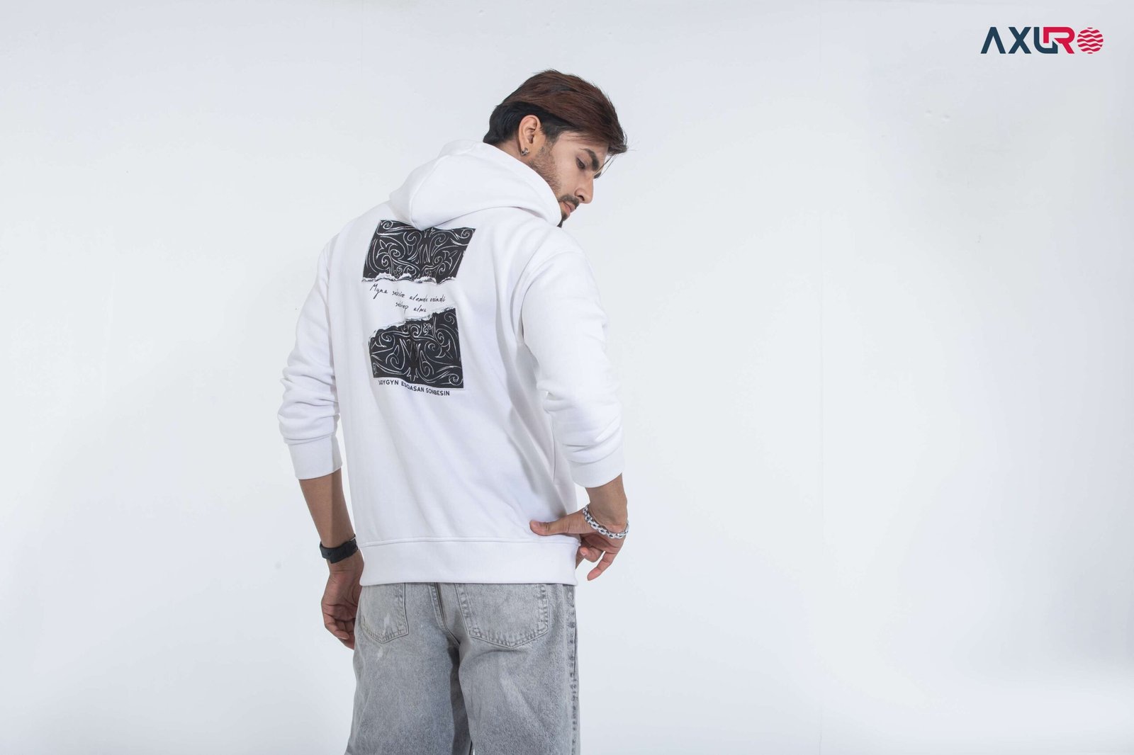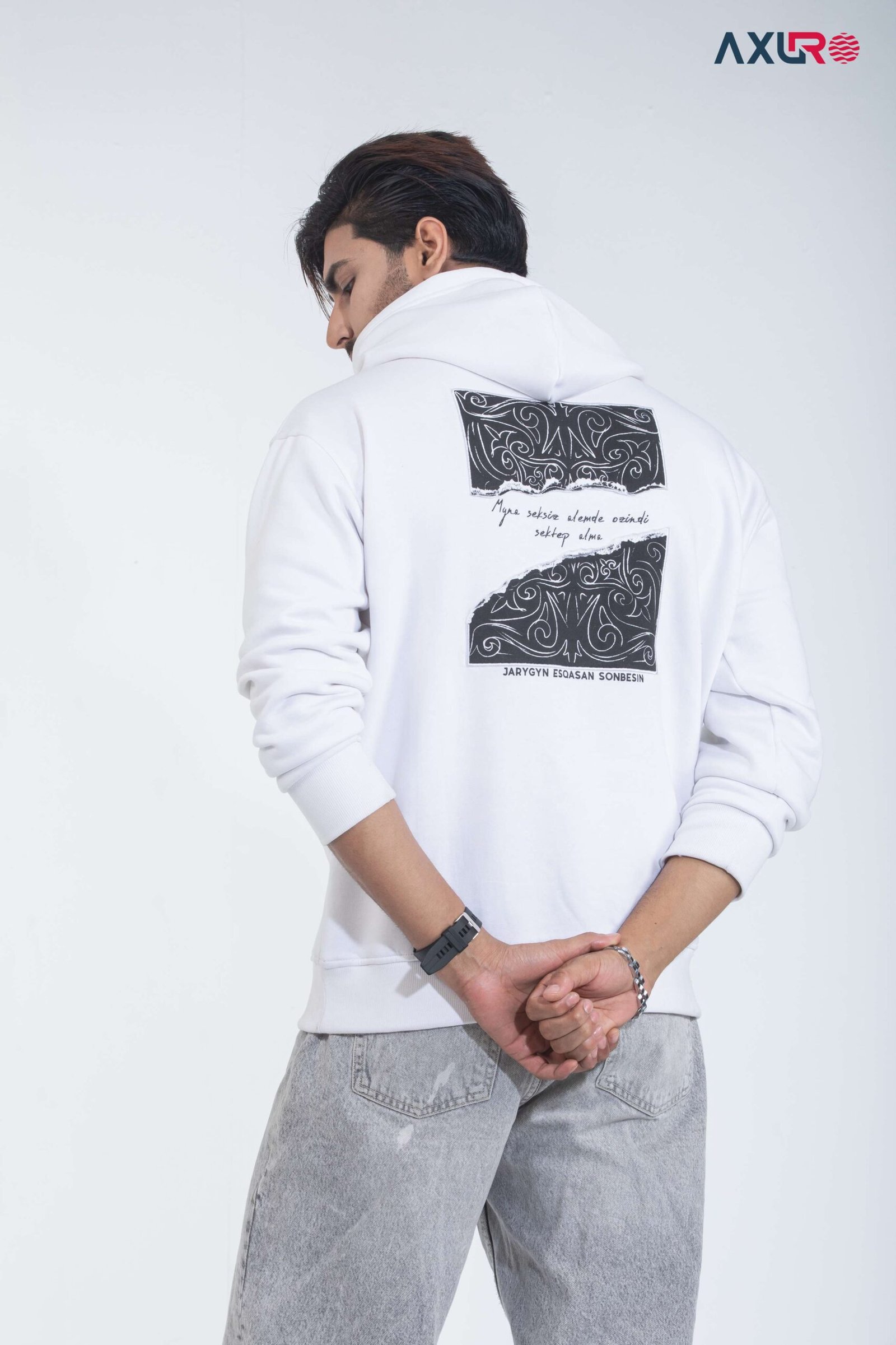 Minimal high-density on chest printed logo on chest, Back side applied on an extra printed fabric attached it’s called appliqué and special cutting technique with binding embroidery around the edges & printed.